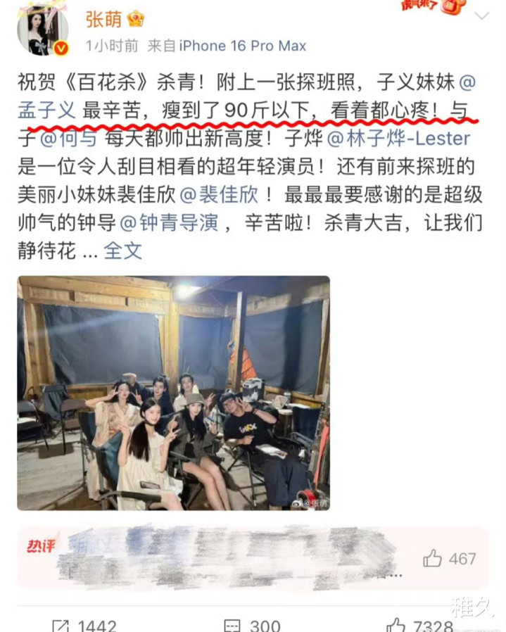 孟子义“瘦到90斤以下”的消息像一阵轻风,顺着横店初夏的热浪吹进了热搜。最先“爆料”的是制片人张萌。她去《百花杀》剧组探班,隔着监视器看见孟子义一袭素衣、腰肢盈盈,忍不住感叹:“她真的太拼了,瘦得叫人心疼,现在连九十斤都没到。”