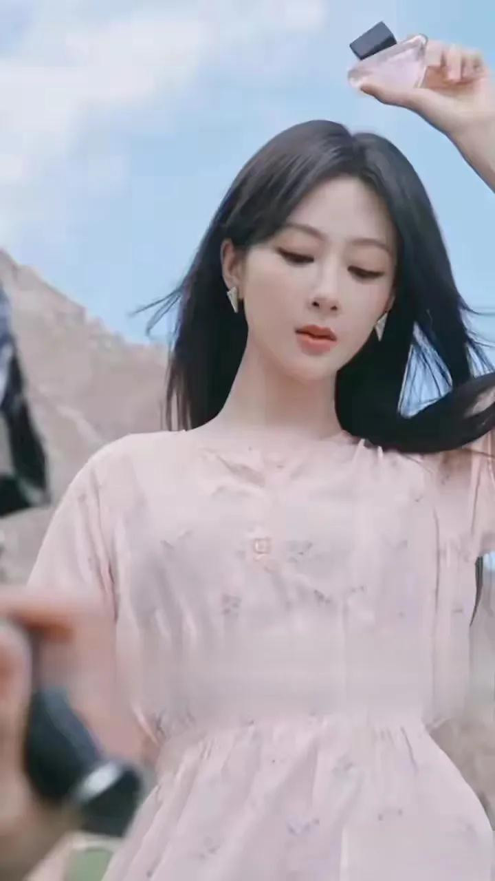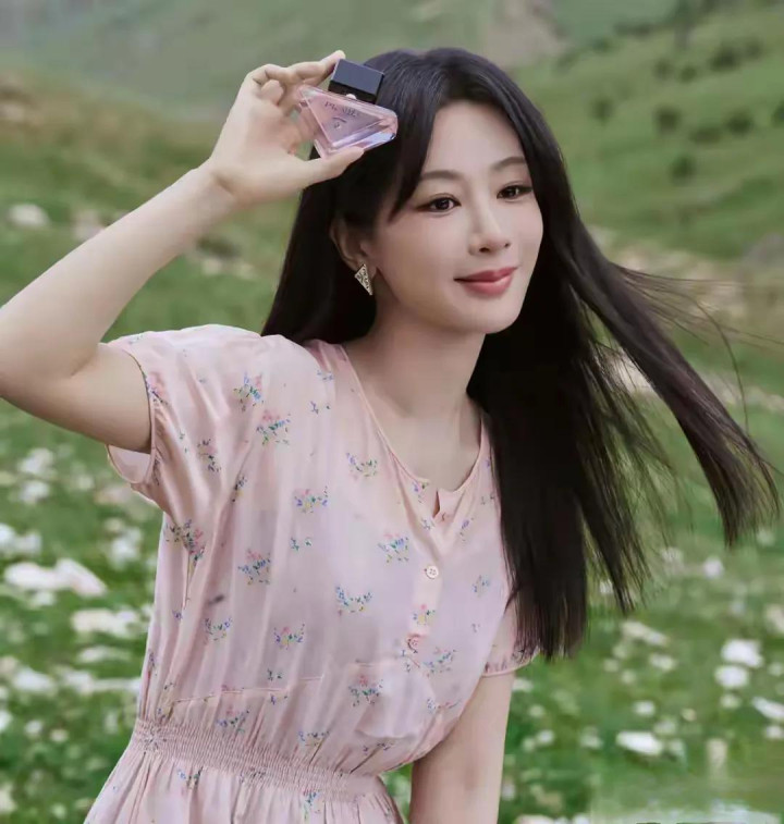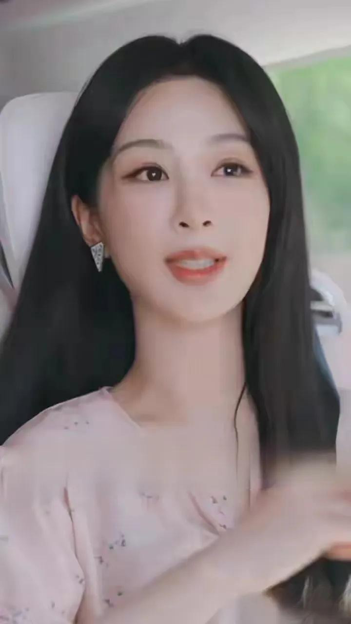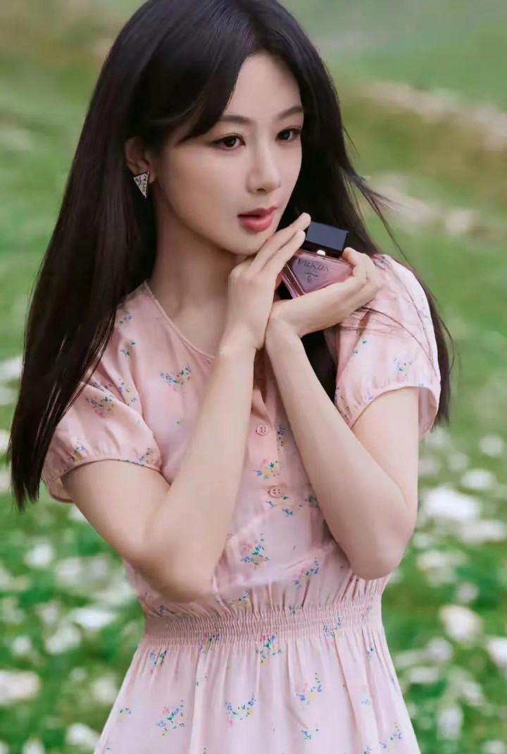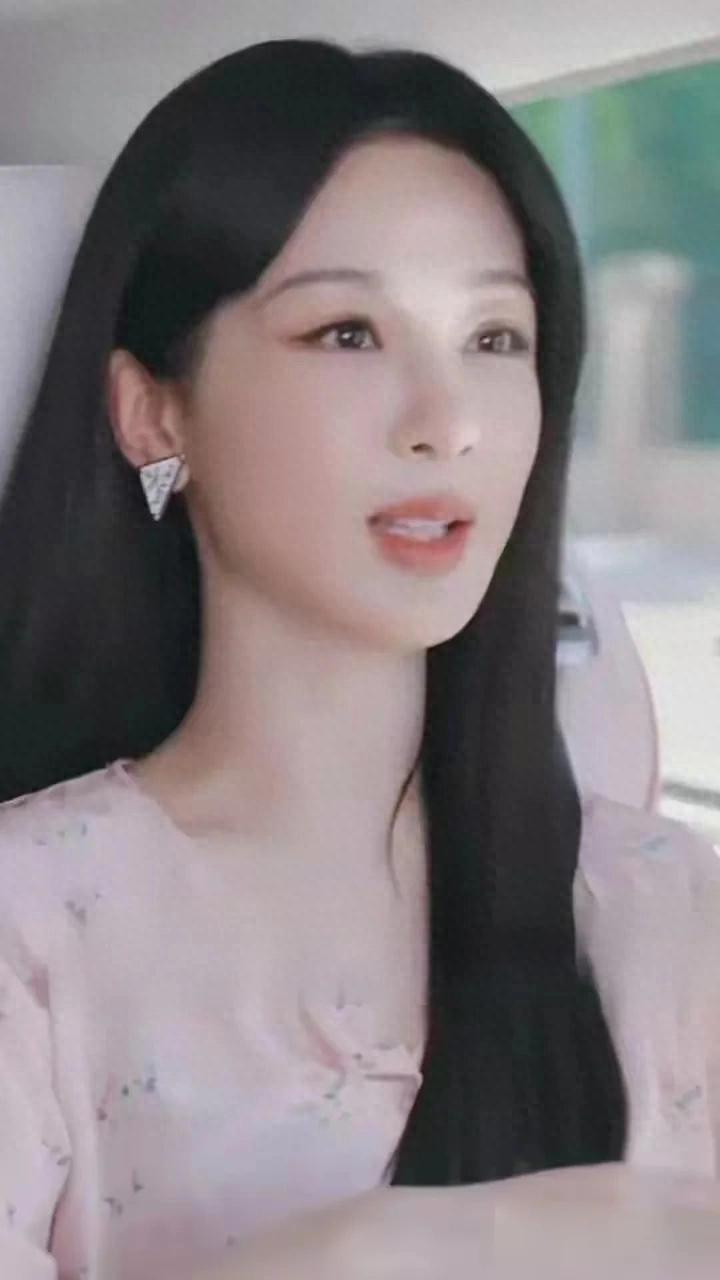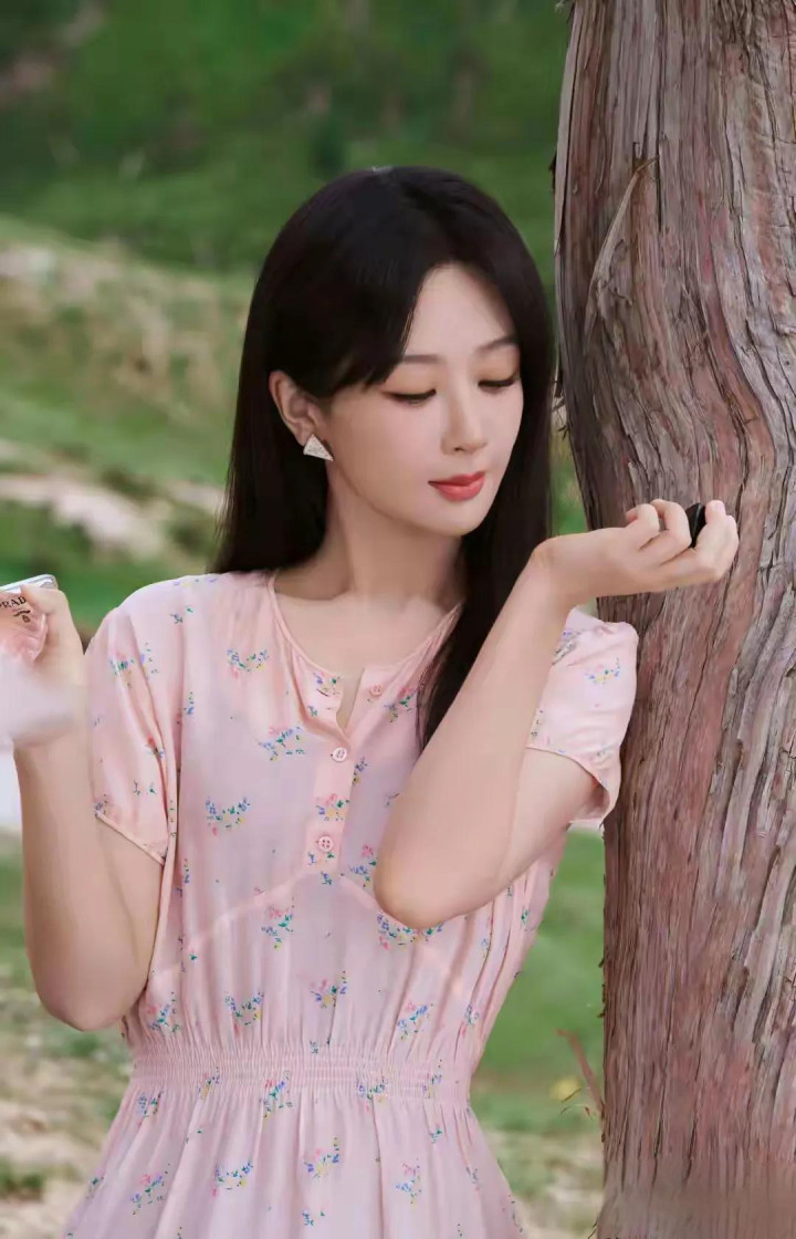 杨紫粉裙碎花造型, 长发配三角耳饰, 气质与美貌并存