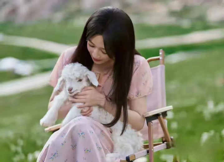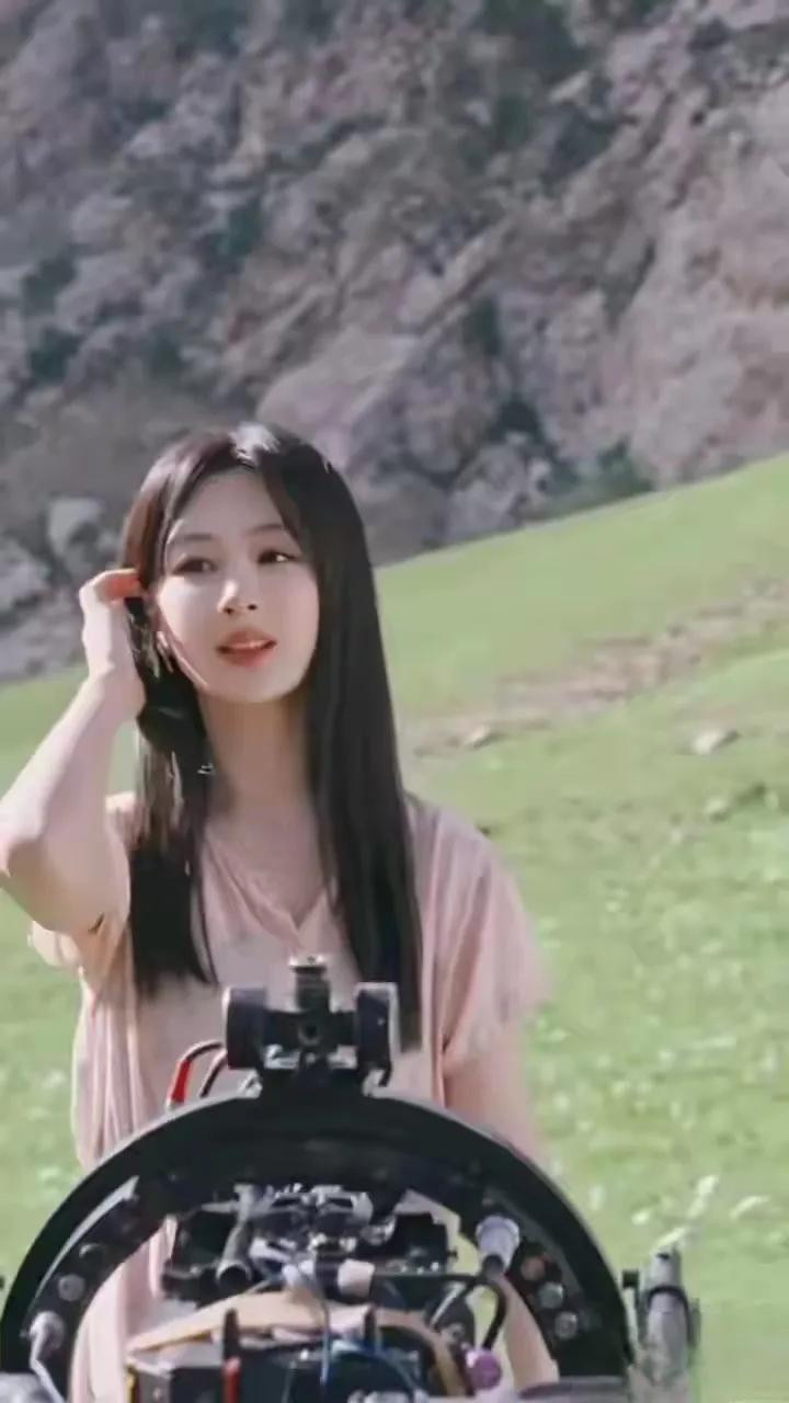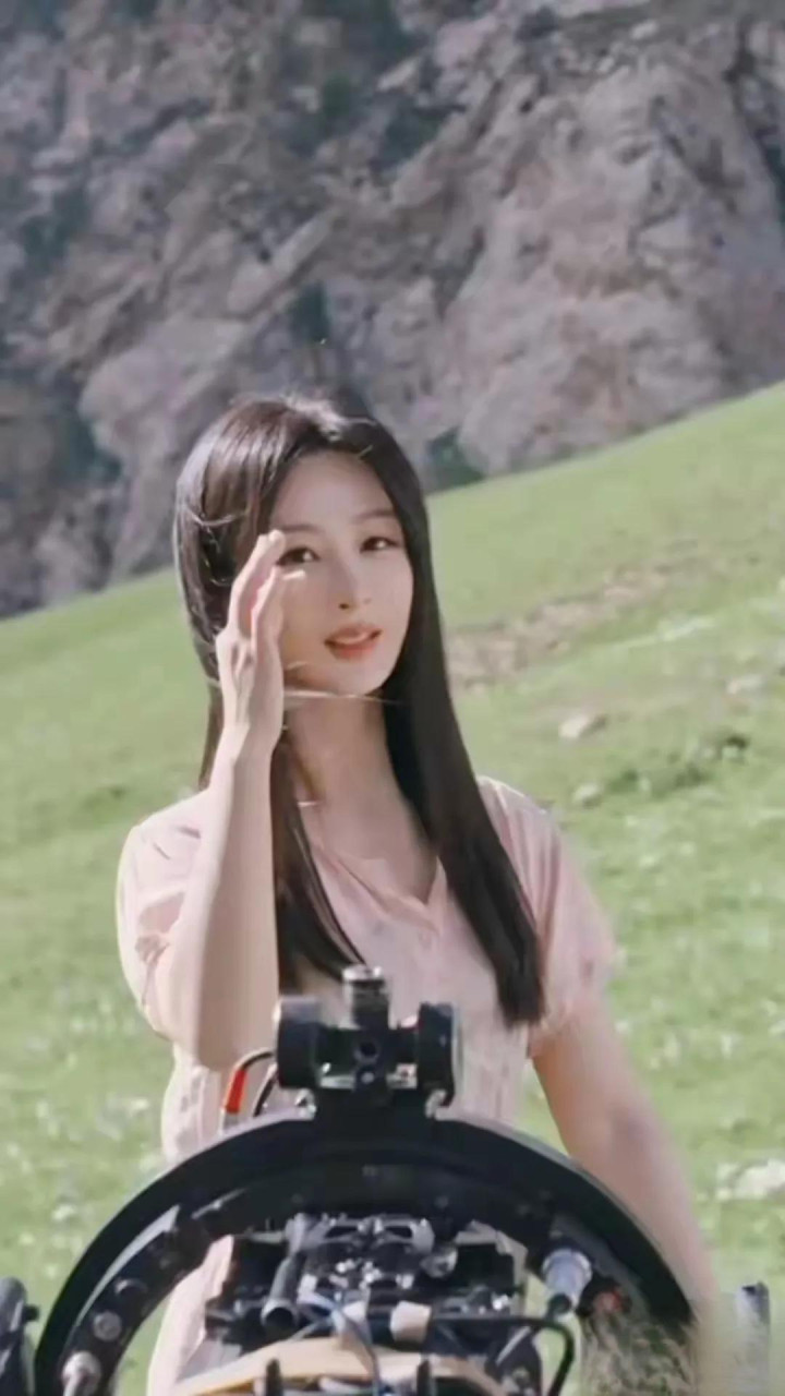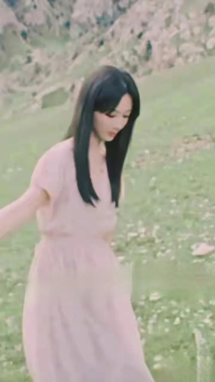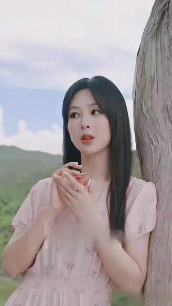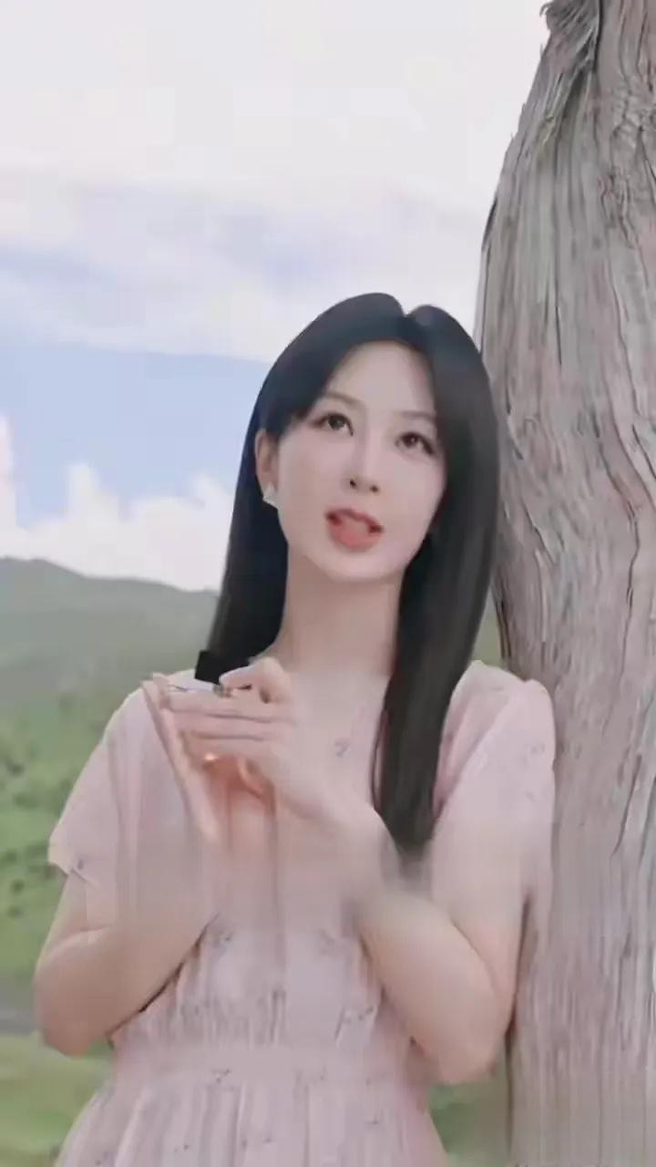 杨紫粉裙碎花造型, 长发配三角耳饰, 气质与美貌并存