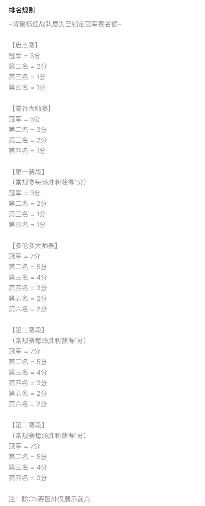 冠军赛积分具体赋值如下: