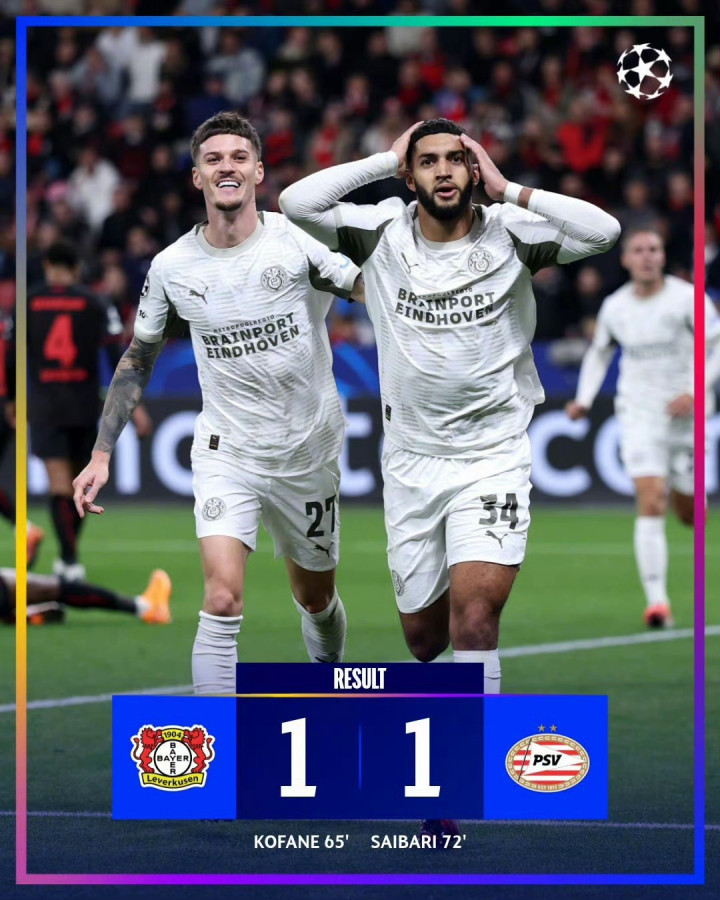 (25)勒沃库森 1-1 PSV埃因霍温(27)