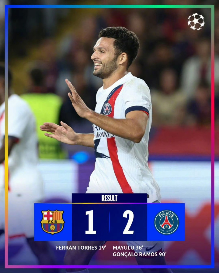 卫冕冠军巴黎圣日耳曼在本赛季依然被看作是夺冠热门,而巴塞罗那同样如此,两队在上赛季都打进了欧冠四强,且都包揽了国内赛事的所有冠军,他们在本轮的交手绝对是这一轮最受关注的比赛。开场后巴萨更加积极,虽然他们依然无法在诺坎普踢球,但他们依然是进入节奏更快的一方。比赛第19分钟,比赛僵局被打破,拉什福德助攻费兰·托雷斯反越位破门。场面被动的巴黎在上半场后半段开始获得机会,他们在第38分钟抓住了巴萨的一次防守真空,马尤卢轻松抽射破门。比分重回同一起跑线后,比赛也变得更加焦灼了,就当人们以为两队将握手言和时,巴黎完成了逆转绝杀,卫冕冠军从后向前发动进攻,阿什拉夫助攻贡萨洛·拉莫斯反越位破门,此时是比赛第90分钟,留给巴萨反击的时间已经不够了。最终这场强强对话以巴黎的胜利告终,巴萨在开局不错的情况下为他们羸弱的后防线付出了代价。