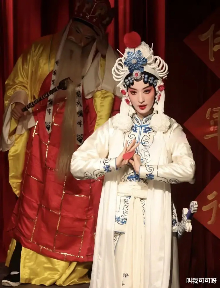 王楚然的表演细节尤为精彩,水袖轻扬间,她的身段飘逸如仙;眼波流转时,每一个动作都透露着深厚的古典韵味。尤其是她在还未开腔演唱时,仅仅依靠气韵就已经撑起了“名角”的氛围感。这种专注而精准的表演,体现了她对戏曲功底的深入理解和扎实掌握。从兰花指的精准造型到台步的节奏把握,每一个细节都展现了她对这一传统艺术的敬畏和用心。