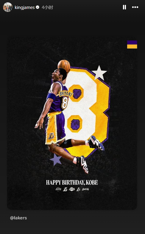 詹姆斯通过Instagram Story转发湖人官方祝科比生日快乐的海报,并为原贴点赞;湖人名宿保罗-加索尔发推送祝福,写道:生日快乐,兄弟。我想念你,永远爱你。