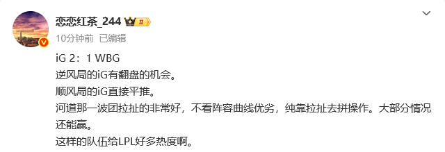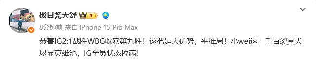 虎扑08月23日讯众人热议IG2-1胜WBG: