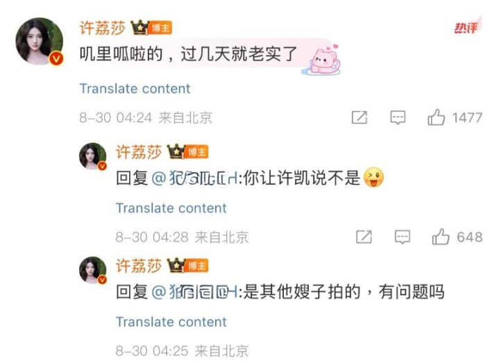 虽然但是,许荔莎在直播中提到,她发的那些许凯的照片不是她拍的,是其他女生拍的,但强调:我说的所有东西都是真的,我没有说任何假话,你们看到的那些东西都是真的。