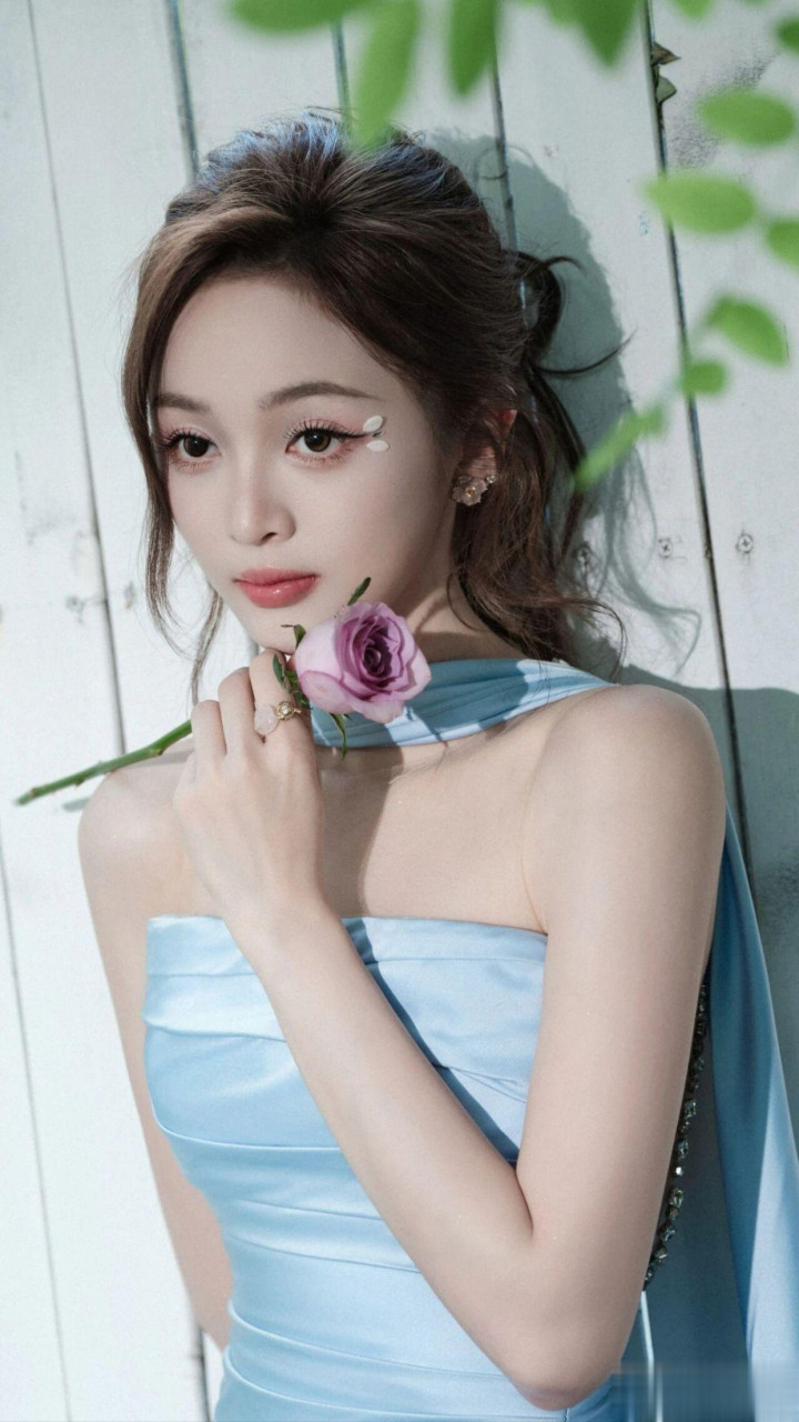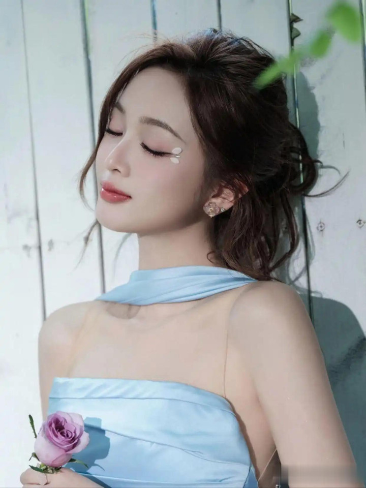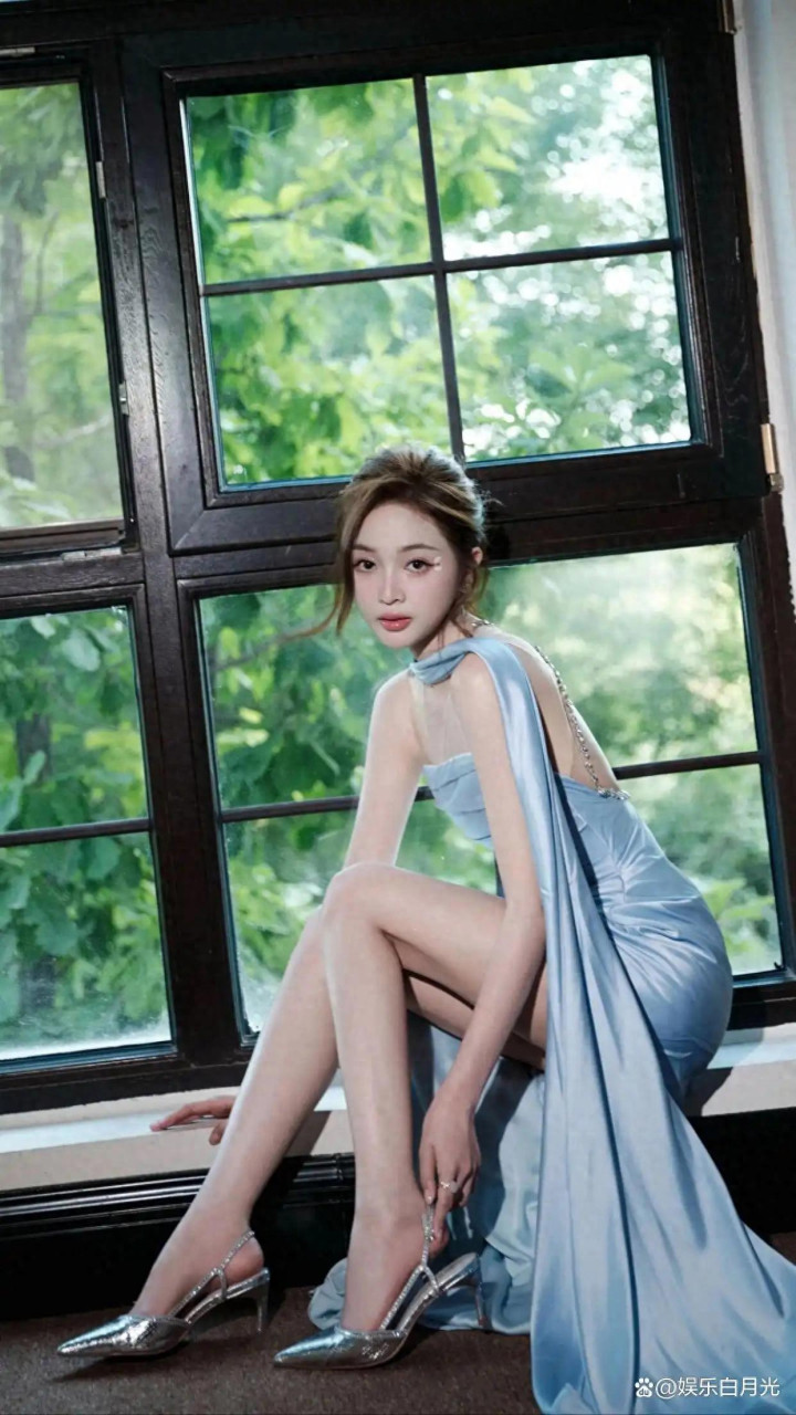 “春风摇绿影,风动裙裾心亦动。”当吴宣仪静坐在那扇框住翠意的窗前,浅蓝缎面礼服从肩头倾泻而下,似把整个仲夏的温柔都织进了衣褶里。光影穿过枝叶在她发梢跳跃,裙角随呼吸轻颤,每一寸线条都在诉说独属于夏日的心动叙事。