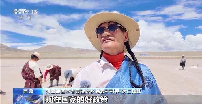 阿里地区革吉县擦咔乡羌麦村村民次仁桑珠:现在合作社统一经营后有了分红,我自己家里有五人,总共加起来有五六千元左右,现在国家的好政策,什么补贴都有,我家里年均收入已经达到了2万多元。