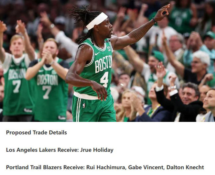说到这,据美媒《Fadeaway World》透露:湖人、开拓者正在商谈一笔3换1交易。具体为湖人送出八村塁、文森特、克内克特得到朱·霍勒迪。