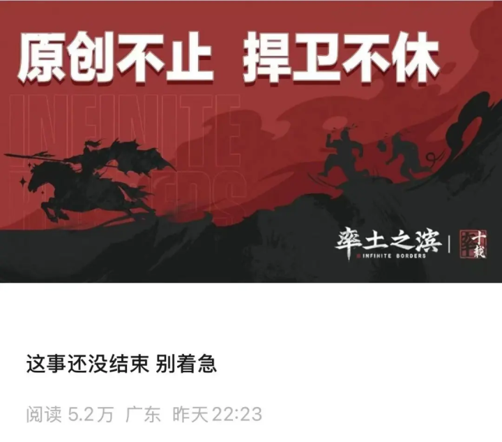 近日,国产SLG游戏《率土之滨》官方更新了一则推文,全文仅 “这事还没结束,别着急” 九个字。
