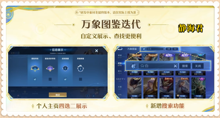 不少玩家反馈「万象图鉴」玩法有些小问题,等到新赛季,玩家不仅可以选择展示的内容,还可以选择关闭万象图鉴。