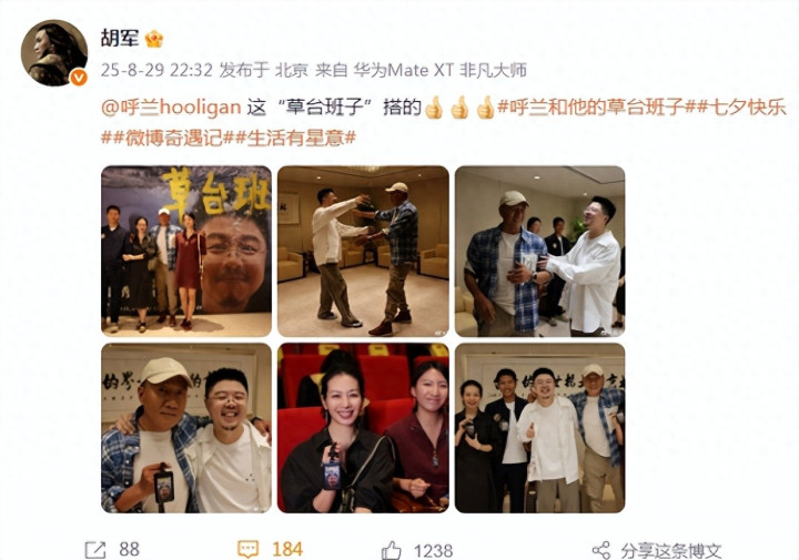 8月29日晚,演员胡军在个人社交平台分享了一组带老婆儿女捧场友人演出的照片,一家四口久违同框,画面自然是分外温馨幸福。