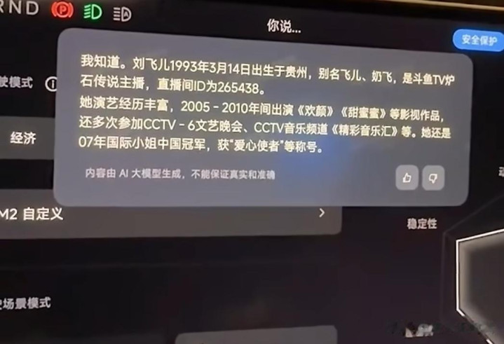 刘飞儿上车之后,首先是感受了一下座椅按摩,紧接着开始调戏小爱同学,并提出问题:你知道刘飞儿吗?更是怕人工智能听错,还强调了一下自己的名字是飞机的飞,结果小爱同学给出的答案直接让刘飞儿绷不住了,就连网友也表示:跟你一样会吹牛X!