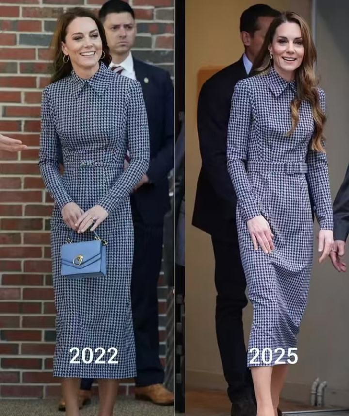 从两次的照片对比来看,凯特可比3年前瘦太多了。